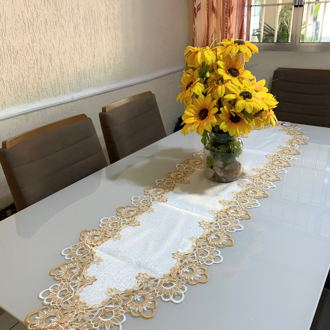 Transforme a sua sala de jantar em um espaço de elegância e sofisticação com o nosso Centro de Mesa Guipir Importado, parte da nossa linha de luxo. Com dimensões de 40x220 cm, este centro de mesa é ideal para mesas retangulares, proporcionando um toque de requinte em qualquer ocasião.